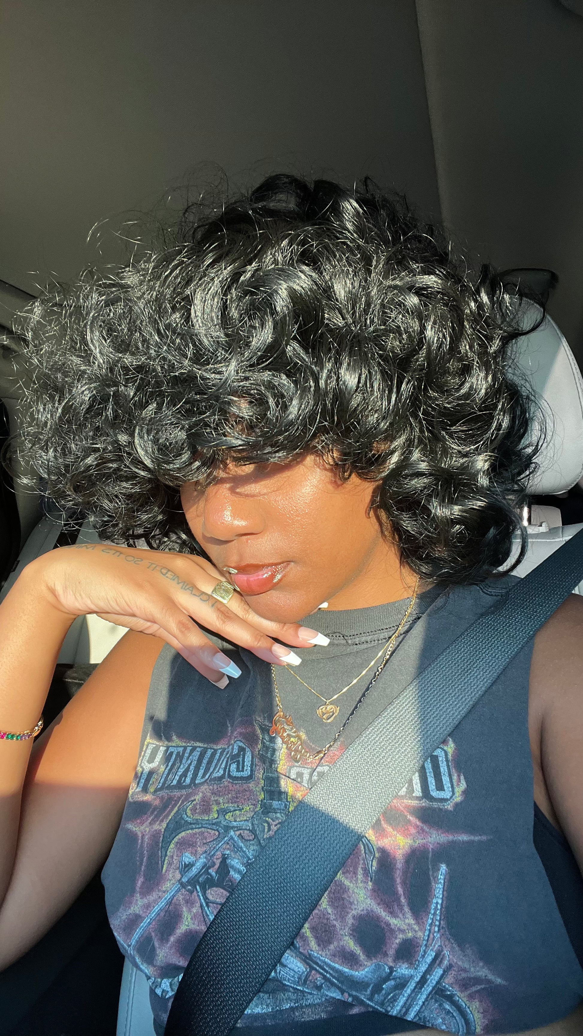 ELIM Big Curly Afro Soft Wig with Bangs Heat Resistant Synthetic Wig